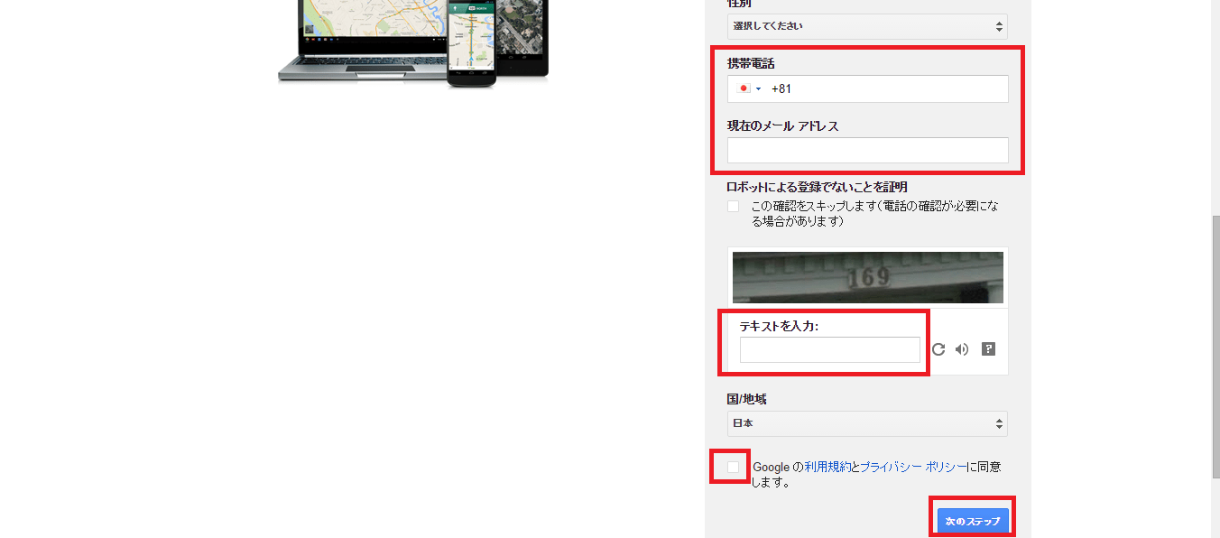 (携帯、Yahooなどのフリーメールでも大丈夫です) - テキストを入力は、上に書いてある数字を入力。この場合は「169」ですが、毎回違います。